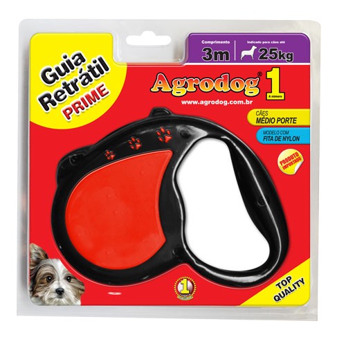 Guia retrátil prime fita de nylon 3m p/cães de ate 25kg top quality (CÃES)